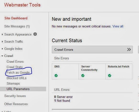 But for those who are already there, let continue with our tutorial. Now, the Fetch as Google option on your Google webmaster tool will be use. Do you know why? Because it will makes Google bots to quickly craw your new post and get it indexed.